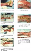 骨组织烧伤创面的处理:对骨暴露先用MEBO保护创面,一周后可将坏死的骨膜、骨皮质清除,而后在骨表面用骨钻按0.5cm~1cm孔距钻孔,深达髓质,以出血为度,再用MEBO油纱覆盖创面,每日换药2次~3次,由钻孔处培养生长肉芽组织,待肉芽组织成片覆盖骨组织后可植皮封闭创面,或以MEBO原位培养潜能再生细胞再生新的皮肤组织封闭愈合创面
