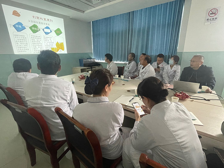 2025年10月15日,《中国烧伤创疡杂志》总编、北京市中西医结合学会烧伤专业委员会副主任委员方进勇,到丹凤县医院进行科室培训,普外科,骨科主任,护理部主任,护士长,医生参加培训。