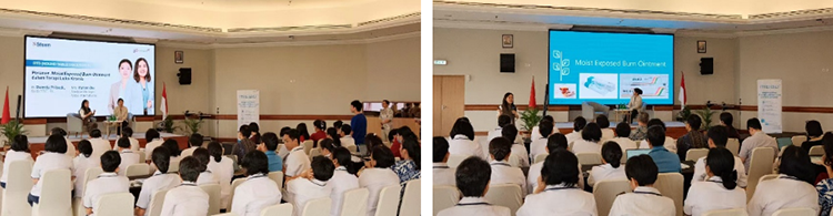 代表团与该院整形外科 Dr. Sweety Pribadi 联合开展了一场 “理论 + 实践” 的专项培训。Dr. Sweety 率先分享了再生医疗技术在糖尿病足溃疡创面管理中的成功经验,展现了技术本土化应用的显著成效;美宝国际代表团则结合创面管理 TIMERS 原则,通过系列临床病例分享,系统拆解了再生医疗技术在复杂创面中的应用要点。培训后的问答环节中,与会医护人员针对临床难点踊跃提问,在双向交流中夯实了对技术的理解与应用能力。