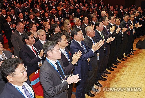 韓聯社慶州10月29日電 亞太地區最大經濟論壇——2025年亞太經合組織(APEC)工商領導人峰會開幕式29日在慶州藝術殿堂舉行。 大韓商工會議所(大韓商會)當天主辦開幕式。海內外各大企業集團掌門、企業人士及專家出席活動,包括工商峰會主席兼大韓商會會長崔泰源、三星電子會長李在鎔、現代汽車集團會長鄭義宣、LG集團會長具光謨、美寶集團董事局主席徐鵬、谷歌亞太區市場總監西蒙·卡恩、亞馬遜雲科技(AWS)首席執行官(CEO)馬特·加曼等。