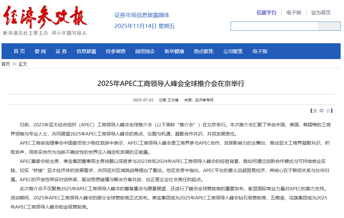 经济参考网:2025年APEC工商领导人峰会全球推介会在京举行